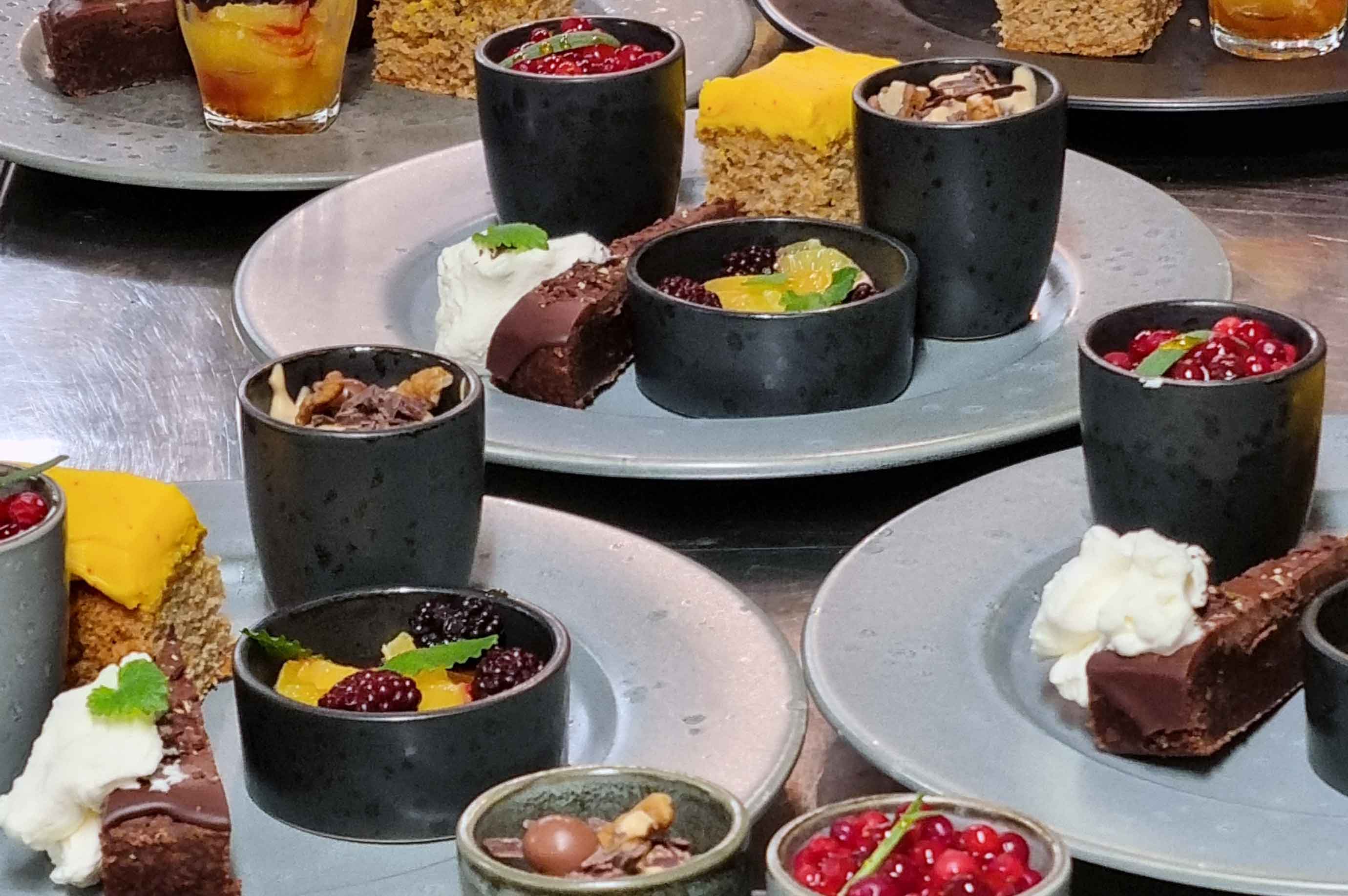 Vi har ingen färdig menyplanering som går att lägga ut på t ex hemsidan eller sociala medier. Skälet är att vi anpassar menyn från vecka till vecka och dag till dag efter tillgång på råvaror, åtgången av mat i restaurangen, rätter tas bort eller läggs till allteftersom behov uppstår. På så sätt kan vi ta vara på råvarorna och eventuella rester och minskar matsvinnet högst avsevärt.